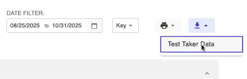 4. Click the Download "Test Taker Data" Icon in the top left to pull the entire report of students that tested during the given reporting period.